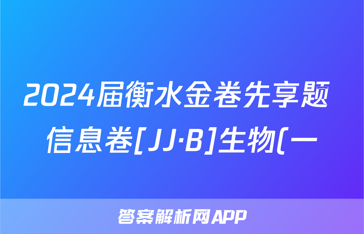 2024届衡水金卷先享题 信息卷[JJ·B]生物(一)1答案正在持续更新,目前2024-2025衡中同卷答案网为大家整理了相关试题及答案,供大家查缺补漏,高效提升成绩。