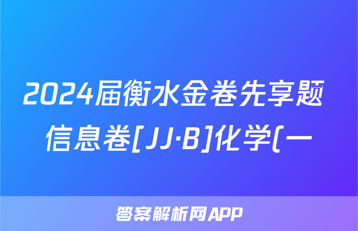 2024届衡水金卷先享题 信息卷[JJ·B]化学(一)1答案正在持续更新,目前2024-2025衡中同卷答案网为大家整理了相关试题及答案,供大家查缺补漏,高效提升成绩。