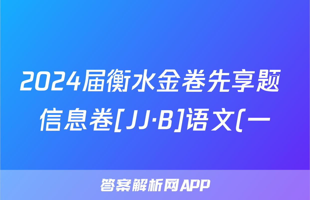 2024届衡水金卷先享题 信息卷[JJ·B]语文(一)1答案正在持续更新,目前2024-2025衡中同卷答案网为大家整理了相关试题及答案,供大家查缺补漏,高效提升成绩。