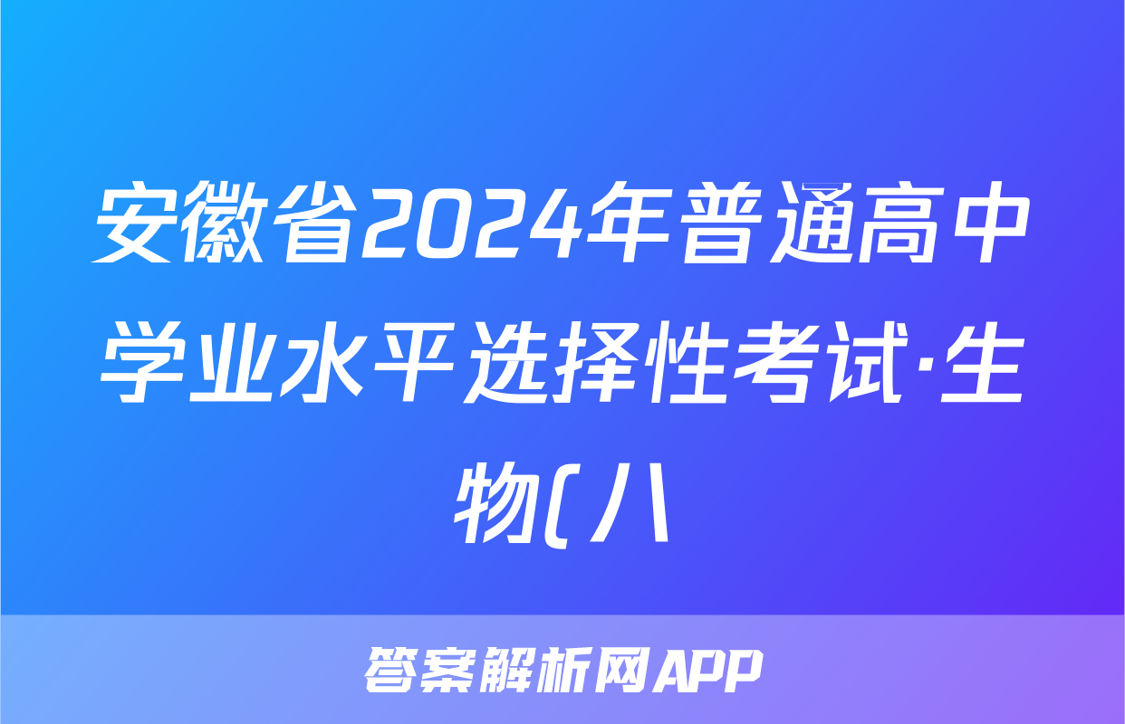 安徽省2024年普通高中学业水平选择性考试·生物(八)8[24·(新高考)ZX·MNJ·生物·AH]试题正在持续更新,目前2024-2025衡中同卷答案网为大家整理了相关试题及答案,供大家查缺补漏,高效提升成绩。