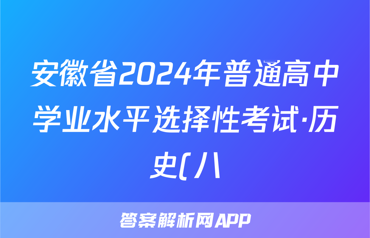 安徽省2024年普通高中学业水平选择性考试·历史(八)8[24·(新高考)ZX·MNJ·历史·AH]试题正在持续更新,目前2024-2025衡中同卷答案网为大家整理了相关试题及答案,供大家查缺补漏,高效提升成绩。