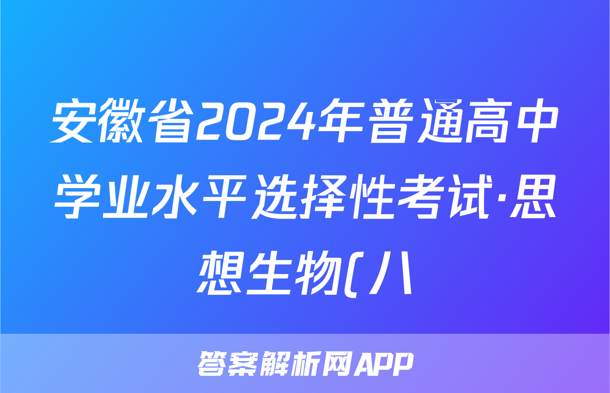 安徽省2024年普通高中学业水平选择性考试·思想生物(八)8[24·(新高考)ZX·MNJ·思想生物·AH]试题正在持续更新,目前2024-2025衡中同卷答案网为大家整理了相关试题及答案,供大家查缺补漏,高效提升成绩。