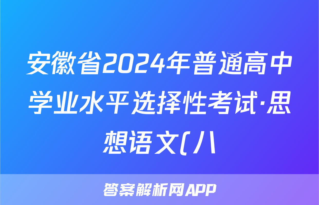 安徽省2024年普通高中学业水平选择性考试·思想语文(八)8[24·(新高考)ZX·MNJ·思想语文·AH]试题正在持续更新,目前2024-2025衡中同卷答案网为大家整理了相关试题及答案,供大家查缺补漏,高效提升成绩。