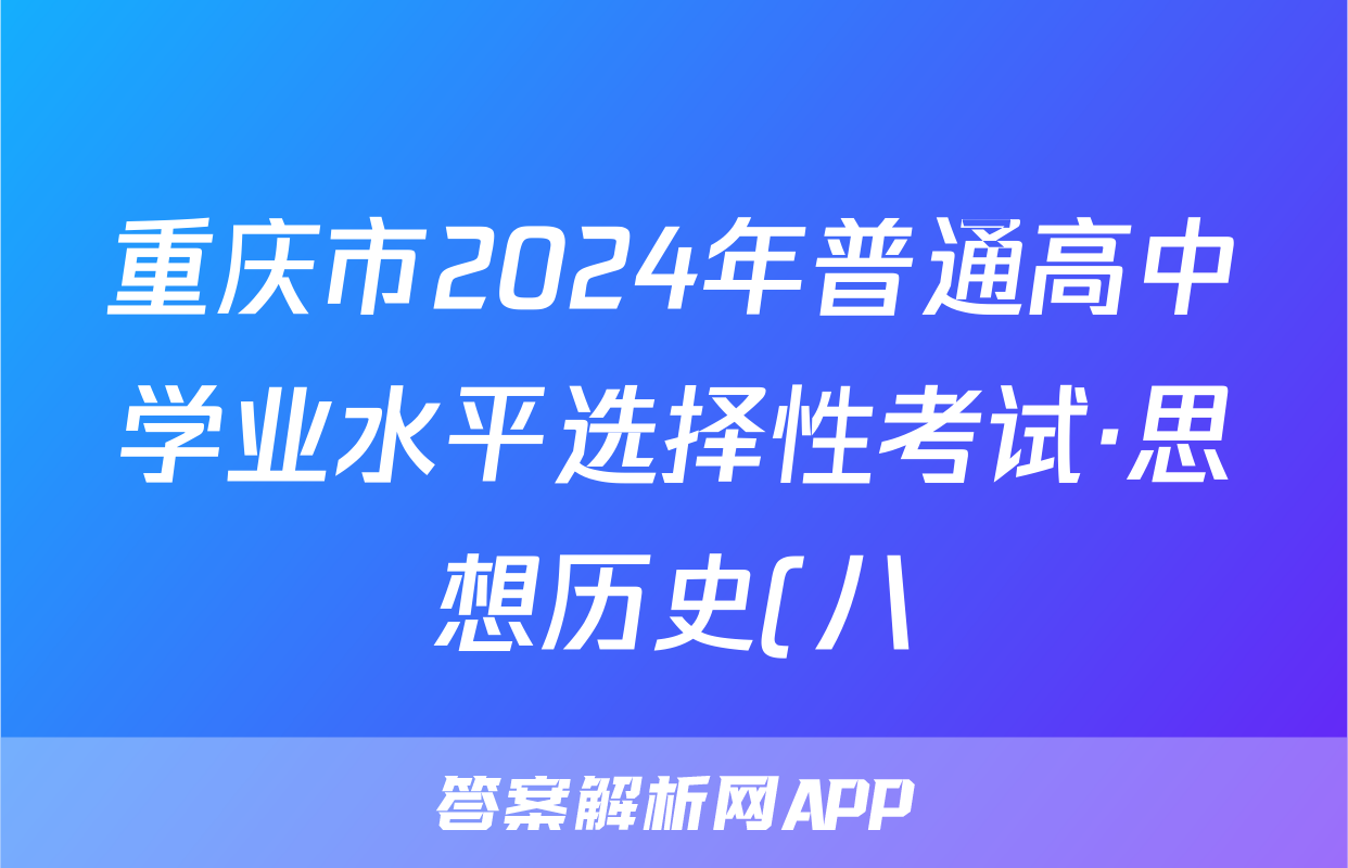 重庆市2024年普通高中学业水平选择性考试·思想历史(八)8[24·(新高考)ZX·MNJ·思想历史·CQ]试题正在持续更新,目前2024-2025衡中同卷答案网为大家整理了相关试题及答案,供大家查缺补漏,高效提升成绩。