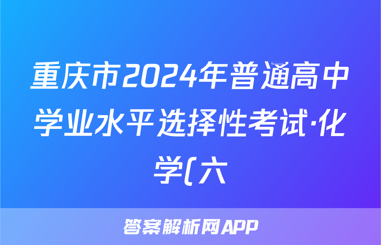 重庆市2024年普通高中学业水平选择性考试·化学(六)6[24·(新高考)ZX·MNJ·化学·CQ]答案正在持续更新,目前2024-2025衡中同卷答案网为大家整理了相关试题及答案,供大家查缺补漏,高效提升成绩。