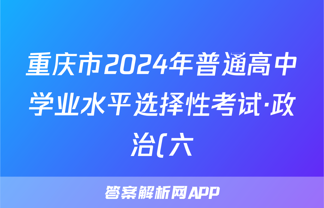 重庆市2024年普通高中学业水平选择性考试·政治(六)6[24·(新高考)ZX·MNJ·政治·CQ]答案正在持续更新,目前2024-2025衡中同卷答案网为大家整理了相关试题及答案,供大家查缺补漏,高效提升成绩。