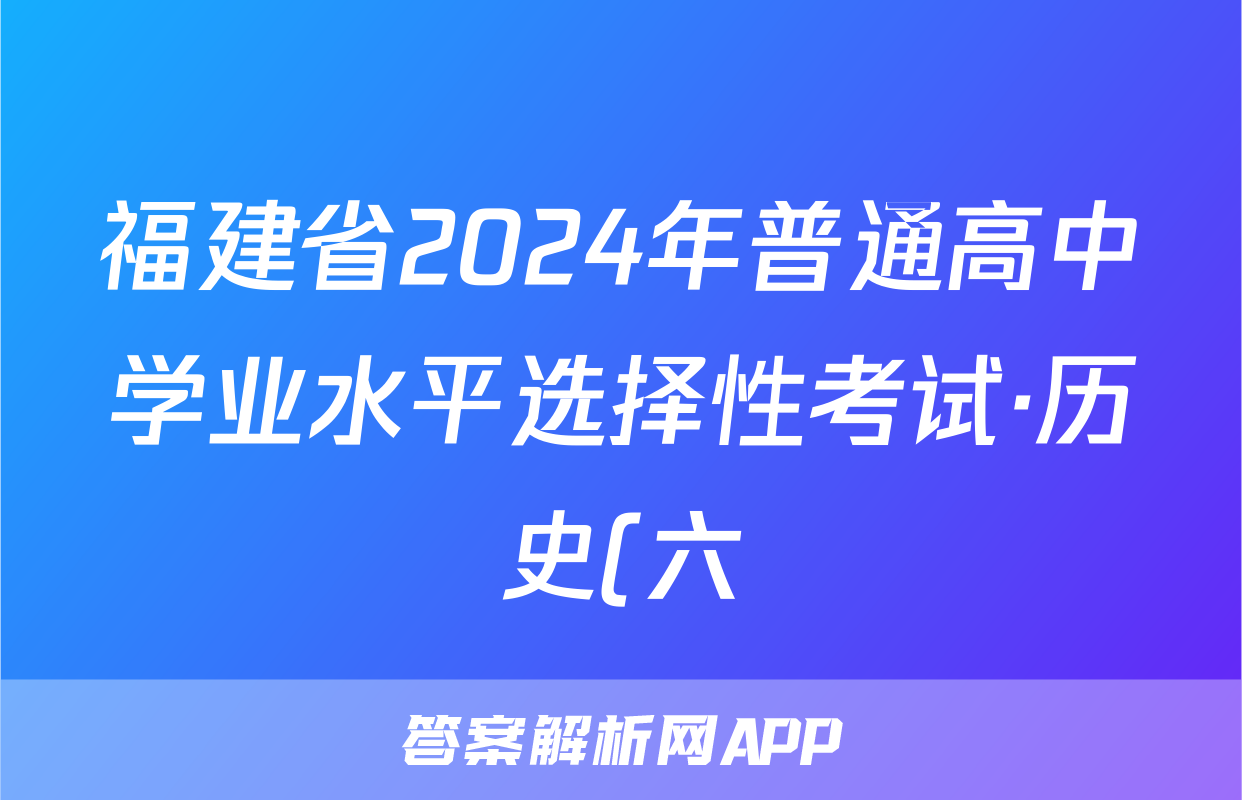 福建省2024年普通高中学业水平选择性考试·历史(六)6[24·(新高考)ZX·MNJ·历史·FJ]试题正在持续更新,目前2024-2025衡中同卷答案网为大家整理了相关试题及答案,供大家查缺补漏,高效提升成绩。