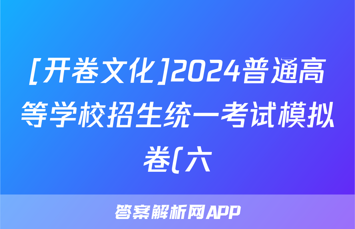 [开卷文化]2024普通高等学校招生统一考试模拟卷(六)6物理XN试题正在持续更新,目前2024-2025衡中同卷答案网为大家整理了相关试题及答案,供大家查缺补漏,高效提升成绩。