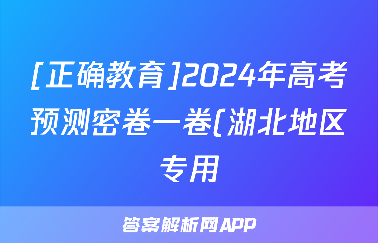 [正确教育]2024年高考预测密卷一卷(湖北地区专用)生物(湖北)答案正在持续更新,目前2024-2025衡中同卷答案网为大家整理了相关试题及答案,供大家查缺补漏,高效提升成绩。