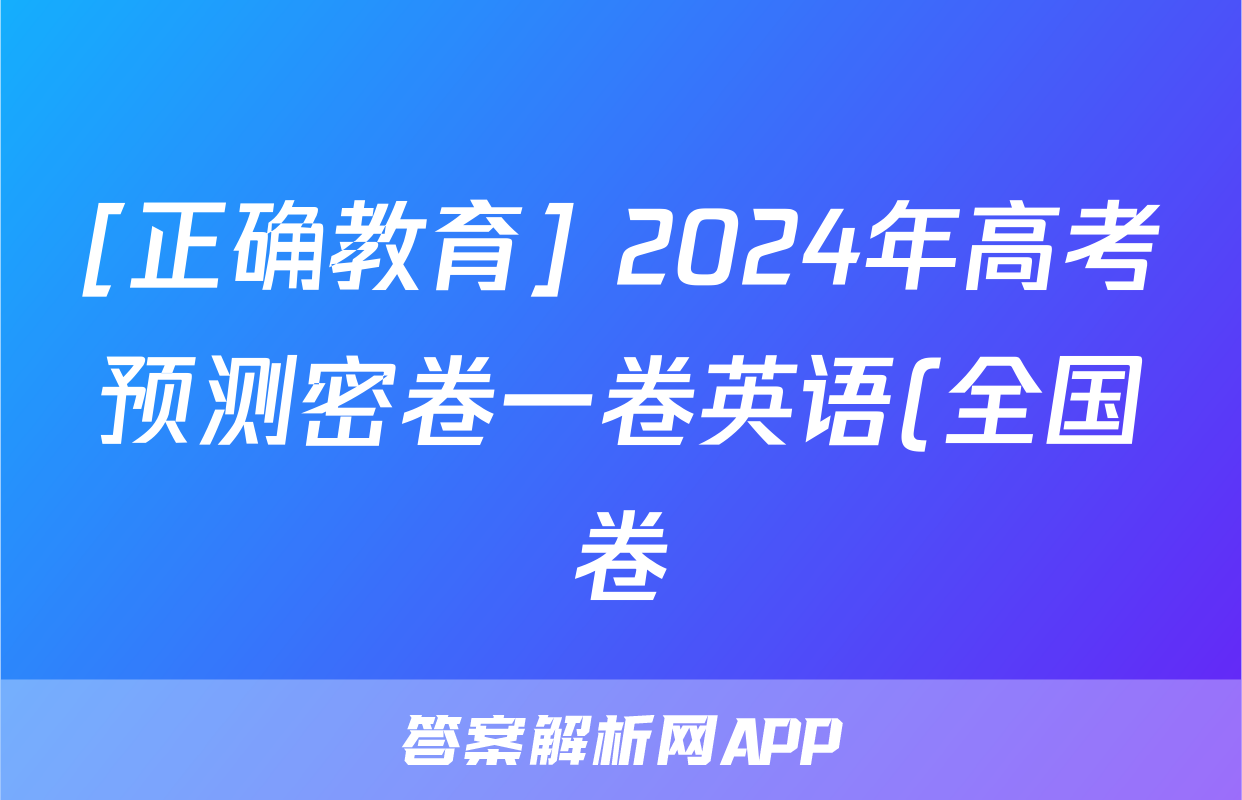 [正确教育] 2024年高考预测密卷一卷英语(全国卷)答案正在持续更新,目前2024-2025衡中同卷答案网为大家整理了相关试题及答案,供大家查缺补漏,高效提升成绩。