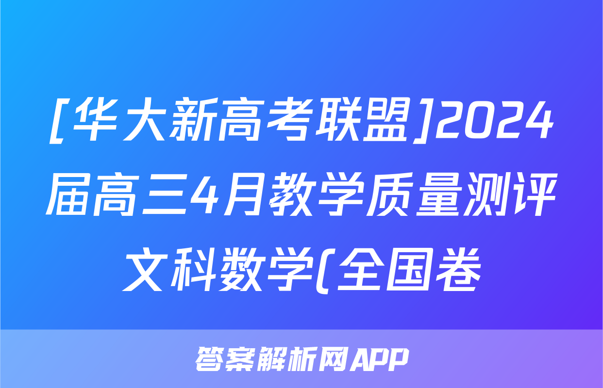 [华大新高考联盟]2024届高三4月教学质量测评文科数学(全国卷)答案正在持续更新,目前2024-2025衡中同卷答案网为大家整理了相关试题及答案,供大家查缺补漏,高效提升成绩。