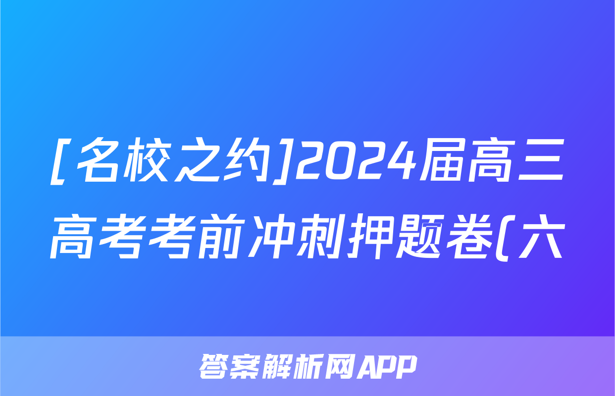 [名校之约]2024届高三高考考前冲刺押题卷(六)6新课标理综试题正在持续更新,目前2024-2025衡中同卷答案网为大家整理了相关试题及答案,供大家查缺补漏,高效提升成绩。