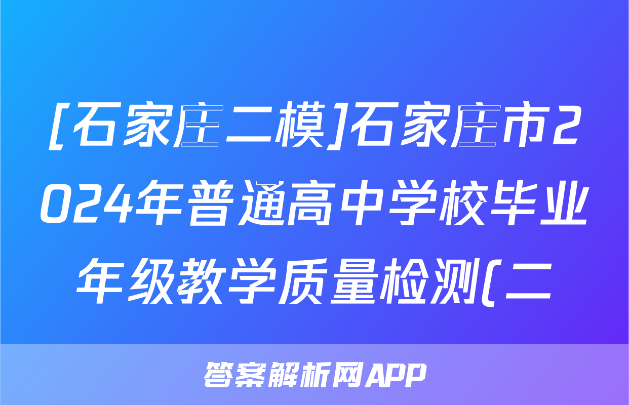 [石家庄二模]石家庄市2024年普通高中学校毕业年级教学质量检测(二)英语答案正在持续更新,目前2024-2025衡中同卷答案网为大家整理了相关试题及答案,供大家查缺补漏,高效提升成绩。