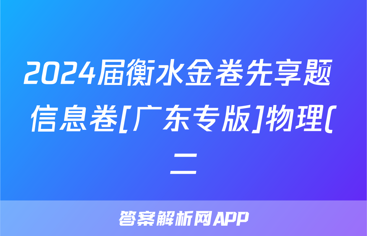 2024届衡水金卷先享题 信息卷[广东专版]物理(二)2答案正在持续更新,目前2024-2025衡中同卷答案网为大家整理了相关试题及答案,供大家查缺补漏,高效提升成绩。