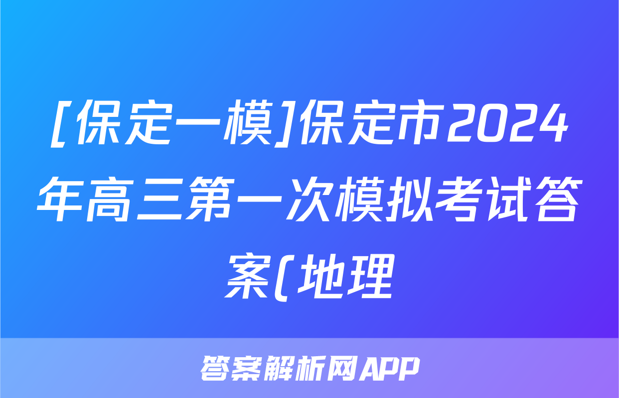 [保定一模]保定市2024年高三第一次模拟考试答案(地理)正在持续更新,目前2024-2025衡中同卷答案网为大家整理了相关试题及答案,供大家查缺补漏,高效提升成绩。
