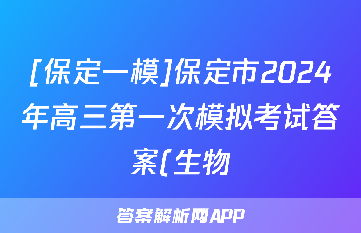 [保定一模]保定市2024年高三第一次模拟考试答案(生物)正在持续更新,目前2024-2025衡中同卷答案网为大家整理了相关试题及答案,供大家查缺补漏,高效提升成绩。