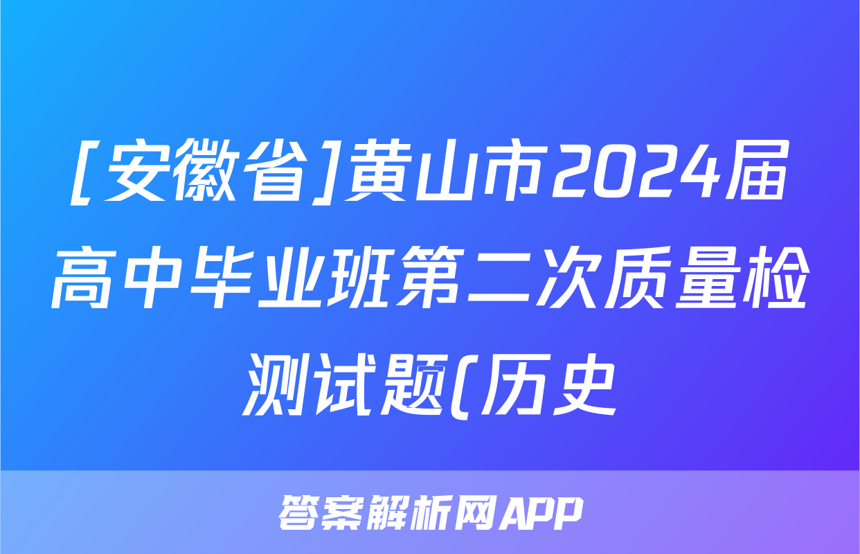 [安徽省]黄山市2024届高中毕业班第二次质量检测试题(历史)正在持续更新,目前2024-2025衡中同卷答案网为大家整理了相关试题及答案,供大家查缺补漏,高效提升成绩。