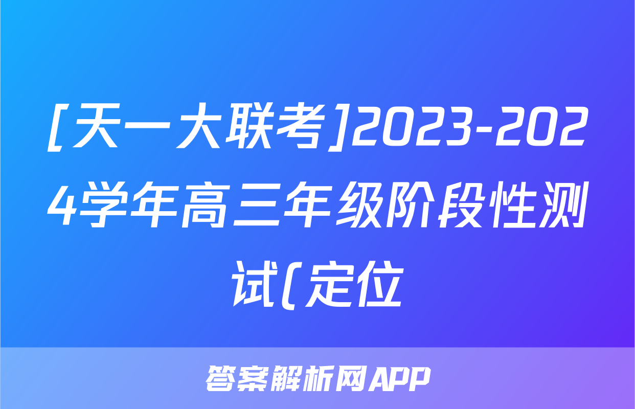[天一大联考]2023-2024学年高三年级阶段性测试(定位)试题(数学)正在持续更新,目前2024-2025衡中同卷答案网为大家整理了相关试题及答案,供大家查缺补漏,高效提升成绩。