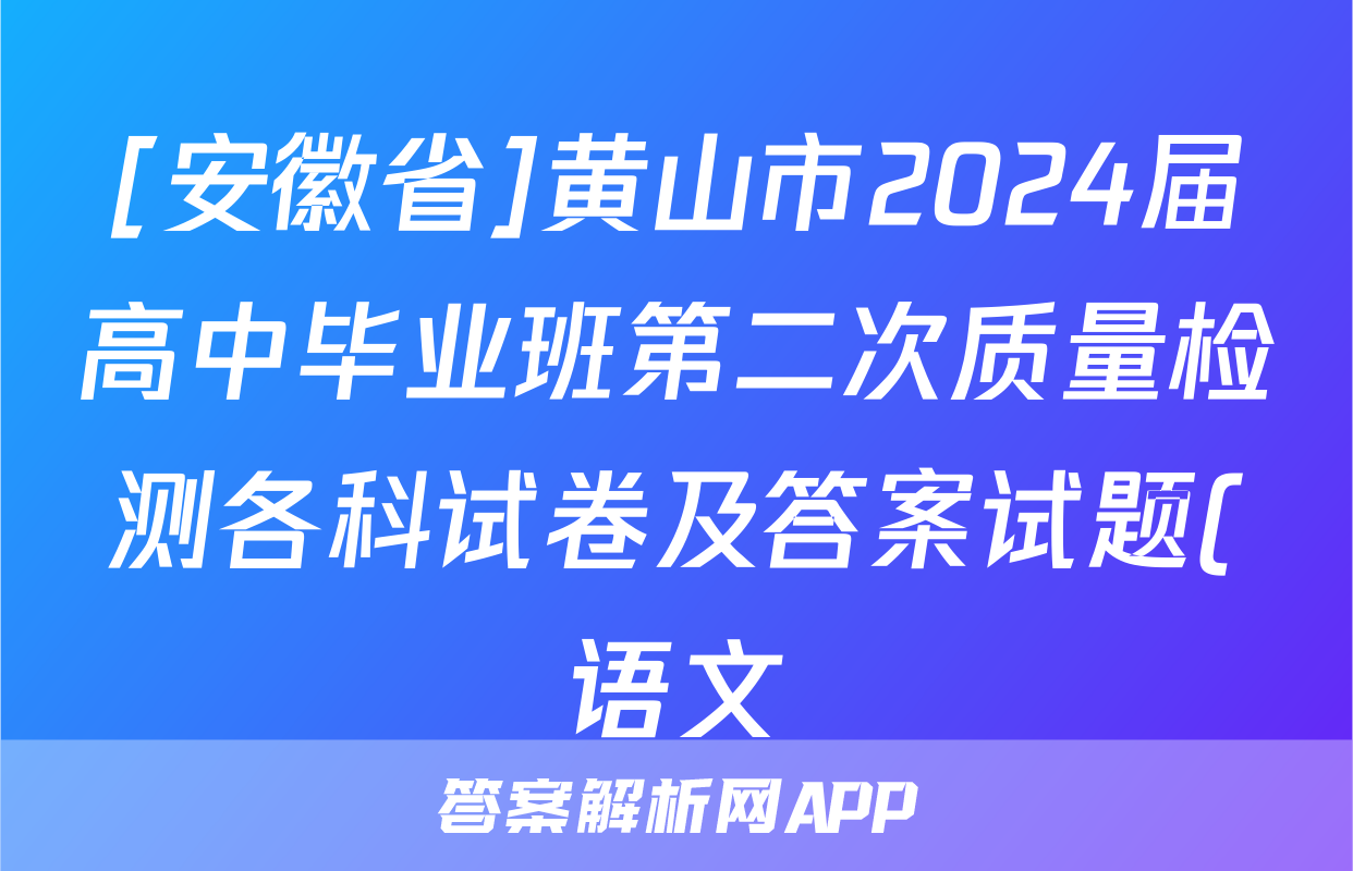 [安徽省]黄山市2024届高中毕业班第二次质量检测各科试卷及答案试题(语文)正在持续更新,目前2024-2025衡中同卷答案网为大家整理了相关试题及答案,供大家查缺补漏,高效提升成绩。