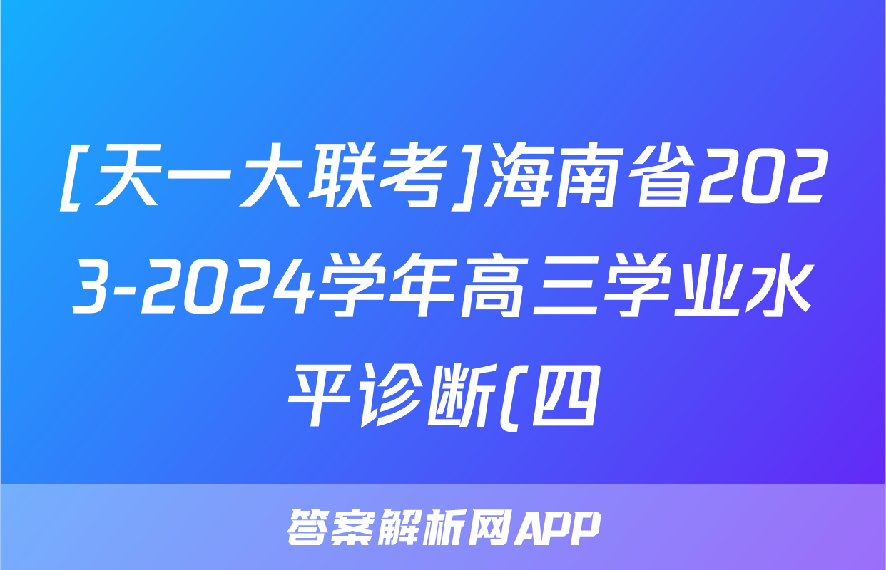 [天一大联考]海南省2023-2024学年高三学业水平诊断(四)4试题(生物)正在持续更新,目前2024-2025衡中同卷答案网为大家整理了相关试题及答案,供大家查缺补漏,高效提升成绩。