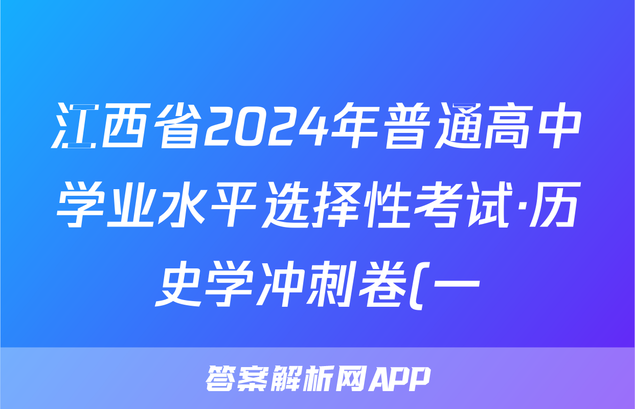 江西省2024年普通高中学业水平选择性考试·历史学冲刺卷(一)1[24·(新高考)CCJ·历史学·JX]答案正在持续更新,目前2024-2025衡中同卷答案网为大家整理了相关试题及答案,供大家查缺补漏,高效提升成绩。