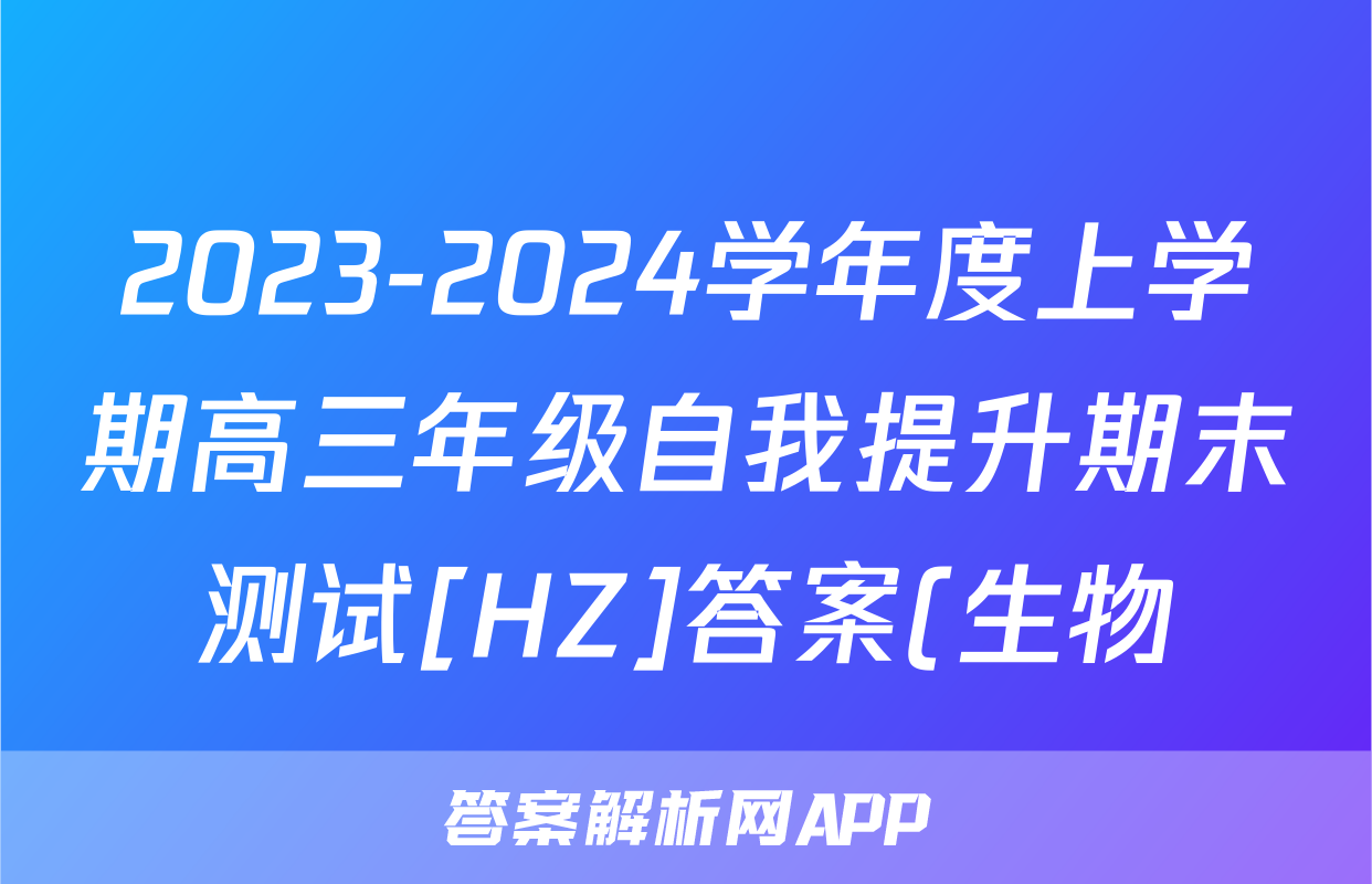 2023-2024学年度上学期高三年级自我提升期末测试[HZ]答案(生物)正在持续更新,目前2024-2025衡中同卷答案网为大家整理了相关试题及答案,供大家查缺补漏,高效提升成绩。