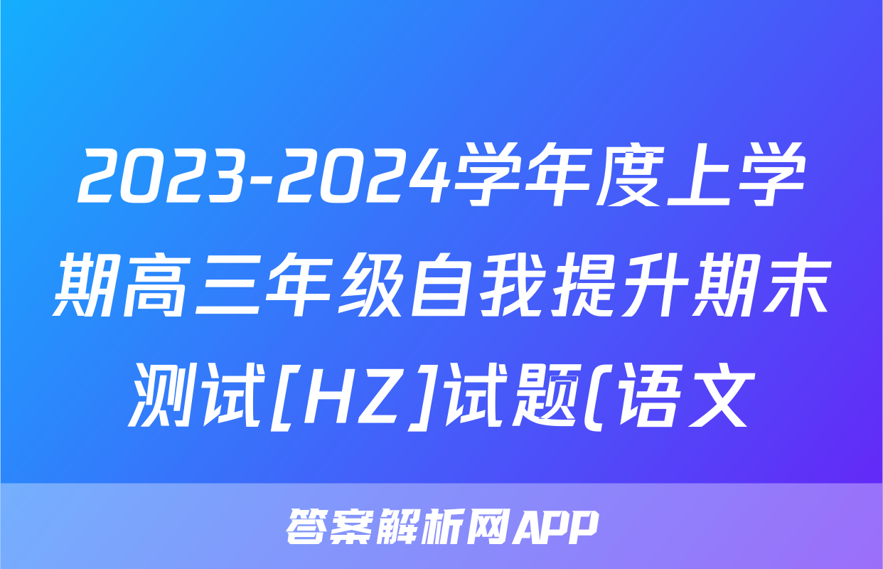 2023-2024学年度上学期高三年级自我提升期末测试[HZ]试题(语文)正在持续更新,目前2024-2025衡中同卷答案网为大家整理了相关试题及答案,供大家查缺补漏,高效提升成绩。