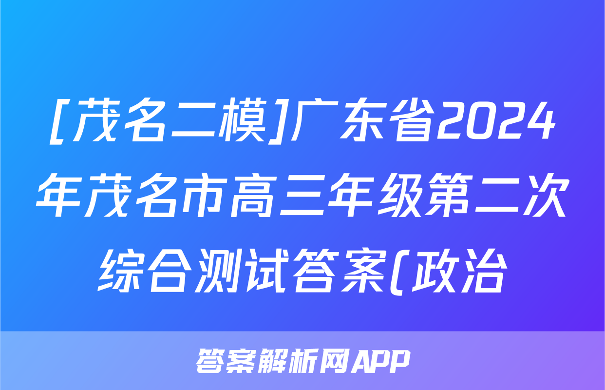 [茂名二模]广东省2024年茂名市高三年级第二次综合测试答案(政治)正在持续更新,目前2024-2025衡中同卷答案网为大家整理了相关试题及答案,供大家查缺补漏,高效提升成绩。