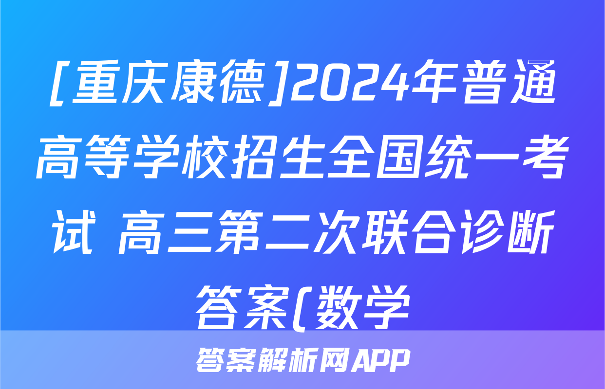 [重庆康德]2024年普通高等学校招生全国统一考试 高三第二次联合诊断答案(数学)正在持续更新,目前2024-2025衡中同卷答案网为大家整理了相关试题及答案,供大家查缺补漏,高效提升成绩。