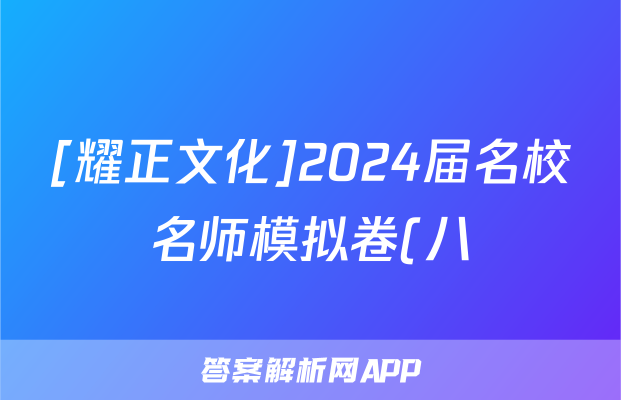 [耀正文化]2024届名校名师模拟卷(八)8试题(英语)正在持续更新,目前2024-2025衡中同卷答案网为大家整理了相关试题及答案,供大家查缺补漏,高效提升成绩。