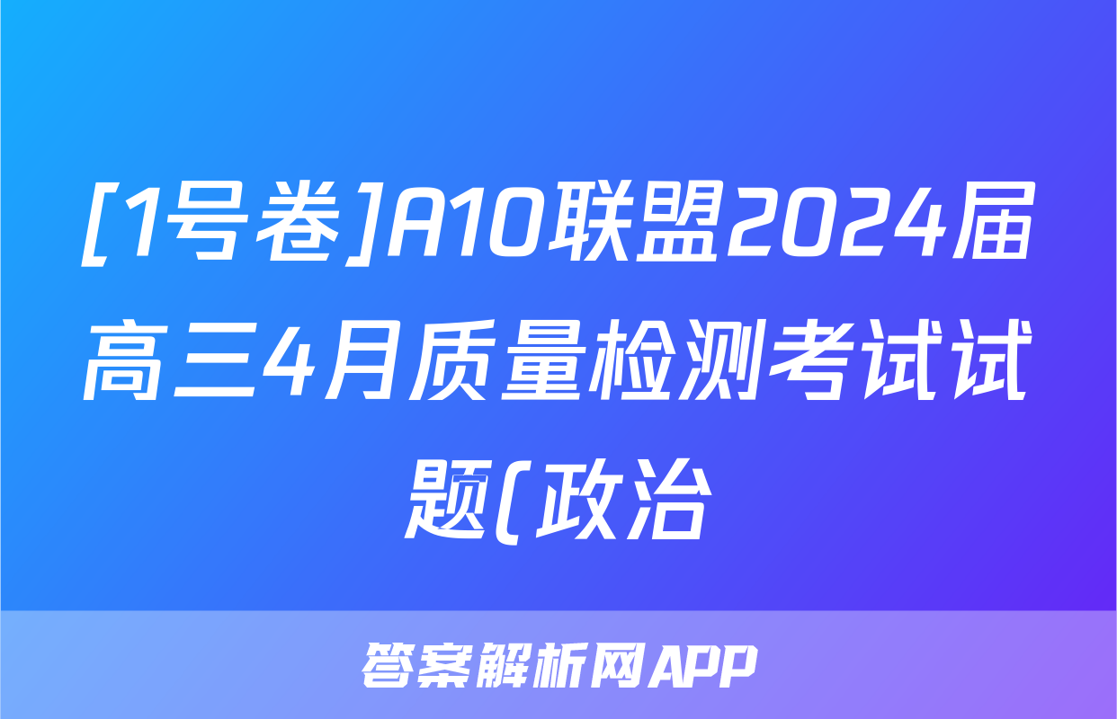 [1号卷]A10联盟2024届高三4月质量检测考试试题(政治)正在持续更新,目前2024-2025衡中同卷答案网为大家整理了相关试题及答案,供大家查缺补漏,高效提升成绩。