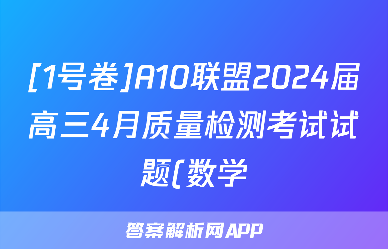 [1号卷]A10联盟2024届高三4月质量检测考试试题(数学)正在持续更新,目前2024-2025衡中同卷答案网为大家整理了相关试题及答案,供大家查缺补漏,高效提升成绩。