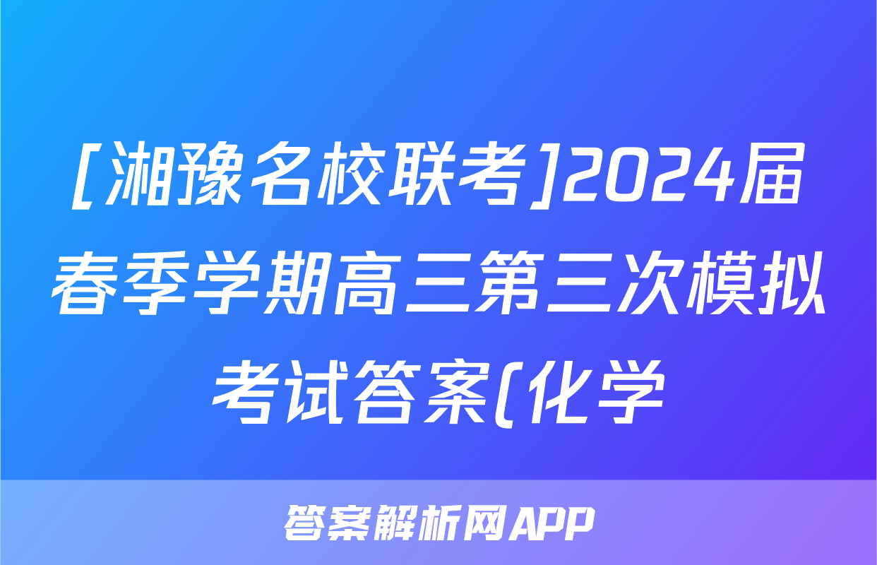 [湘豫名校联考]2024届春季学期高三第三次模拟考试答案(化学)正在持续更新,目前2024-2025衡中同卷答案网为大家整理了相关试题及答案,供大家查缺补漏,高效提升成绩。