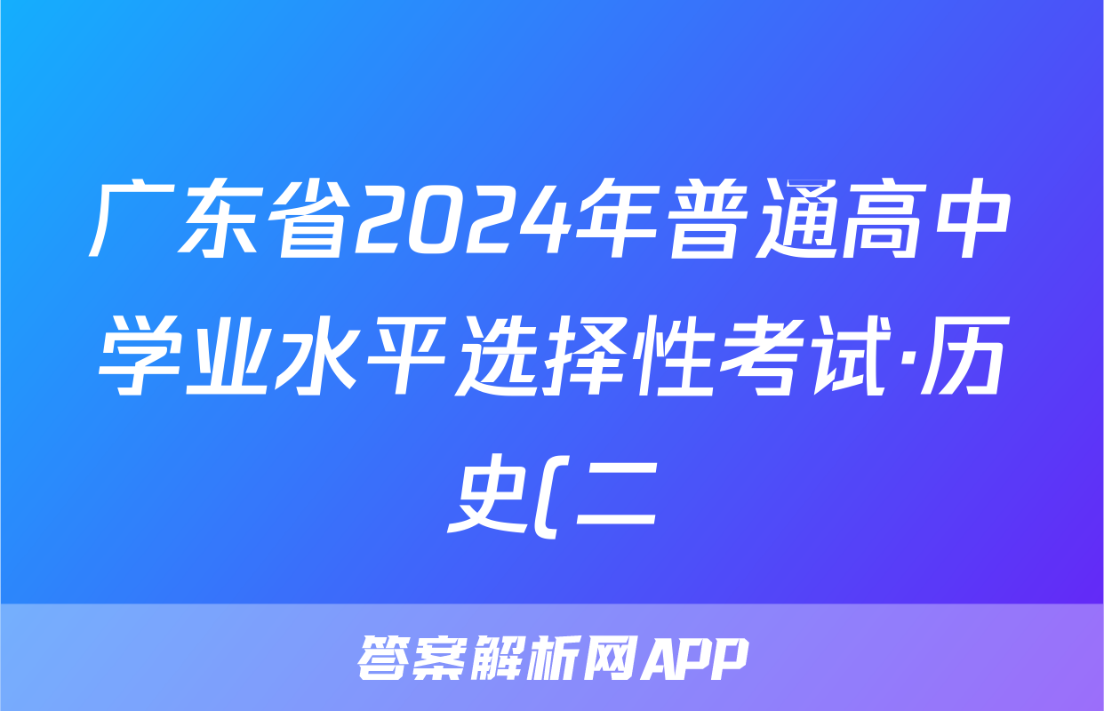 广东省2024年普通高中学业水平选择性考试·历史(二)2[24·(新高考)ZX·MNJ·历史·G DONG]答案正在持续更新,目前2024-2025衡中同卷答案网为大家整理了相关试题及答案,供大家查缺补漏,高效提升成绩。