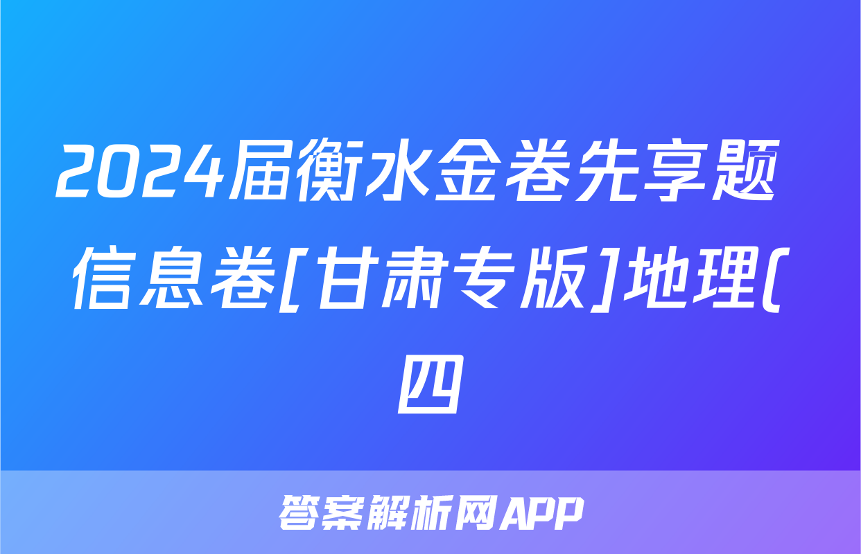 2024届衡水金卷先享题 信息卷[甘肃专版]地理(四)4试题正在持续更新,目前2024-2025衡中同卷答案网为大家整理了相关试题及答案,供大家查缺补漏,高效提升成绩。