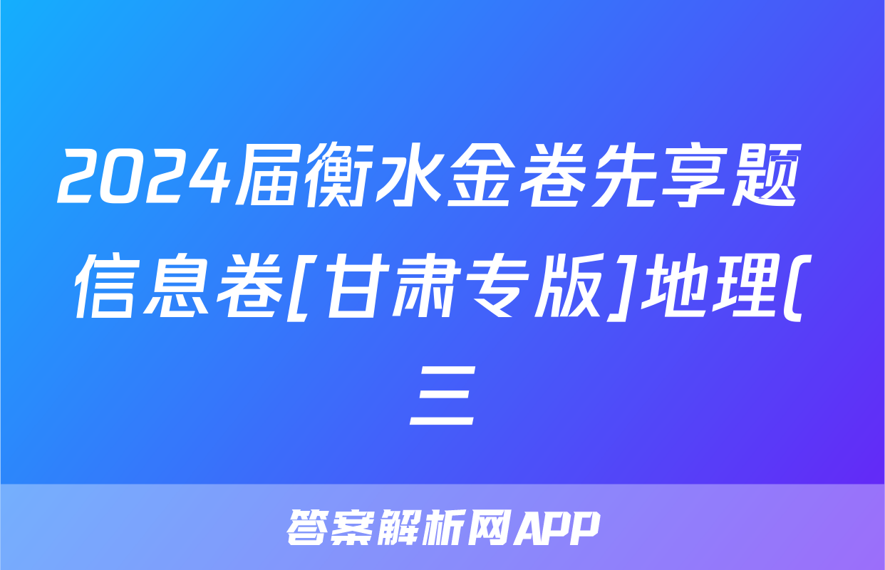 2024届衡水金卷先享题 信息卷[甘肃专版]地理(三)3答案正在持续更新,目前2024-2025衡中同卷答案网为大家整理了相关试题及答案,供大家查缺补漏,高效提升成绩。