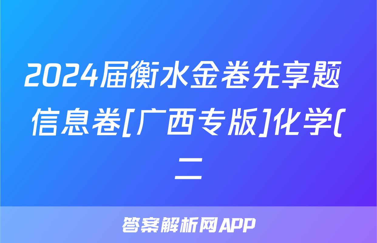 2024届衡水金卷先享题 信息卷[广西专版]化学(二)2答案正在持续更新,目前2024-2025衡中同卷答案网为大家整理了相关试题及答案,供大家查缺补漏,高效提升成绩。