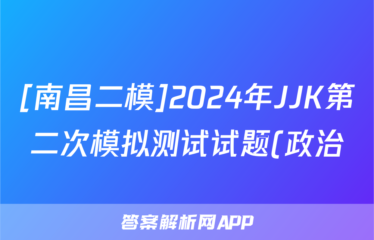 [南昌二模]2024年JJK第二次模拟测试试题(政治)正在持续更新,目前2024-2025衡中同卷答案网为大家整理了相关试题及答案,供大家查缺补漏,高效提升成绩。