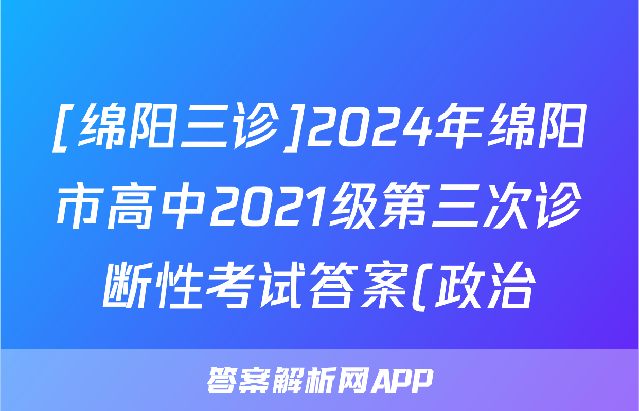 [绵阳三诊]2024年绵阳市高中2021级第三次诊断性考试答案(政治)正在持续更新,目前2024-2025衡中同卷答案网为大家整理了相关试题及答案,供大家查缺补漏,高效提升成绩。