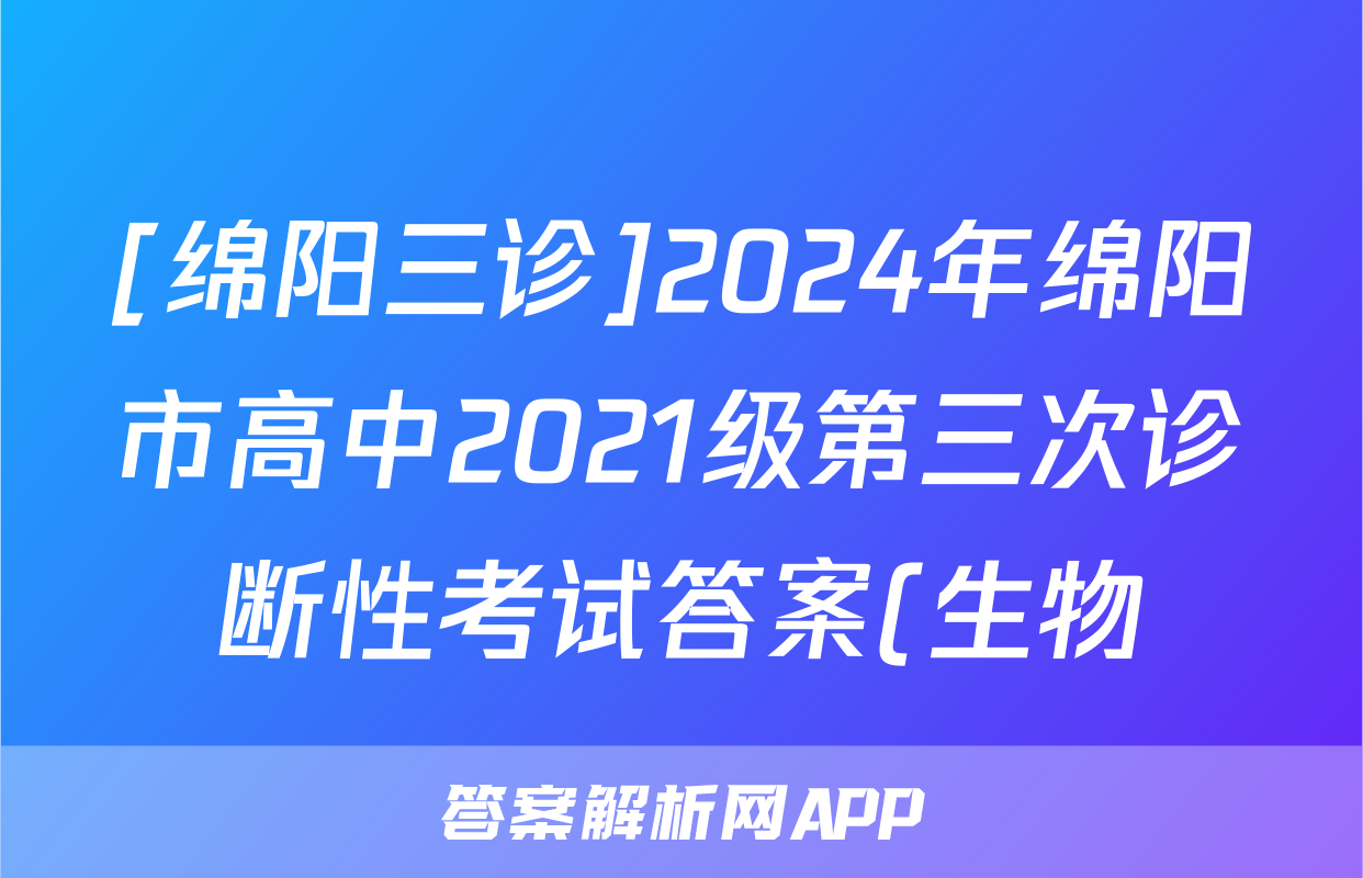 [绵阳三诊]2024年绵阳市高中2021级第三次诊断性考试答案(生物)正在持续更新,目前2024-2025衡中同卷答案网为大家整理了相关试题及答案,供大家查缺补漏,高效提升成绩。