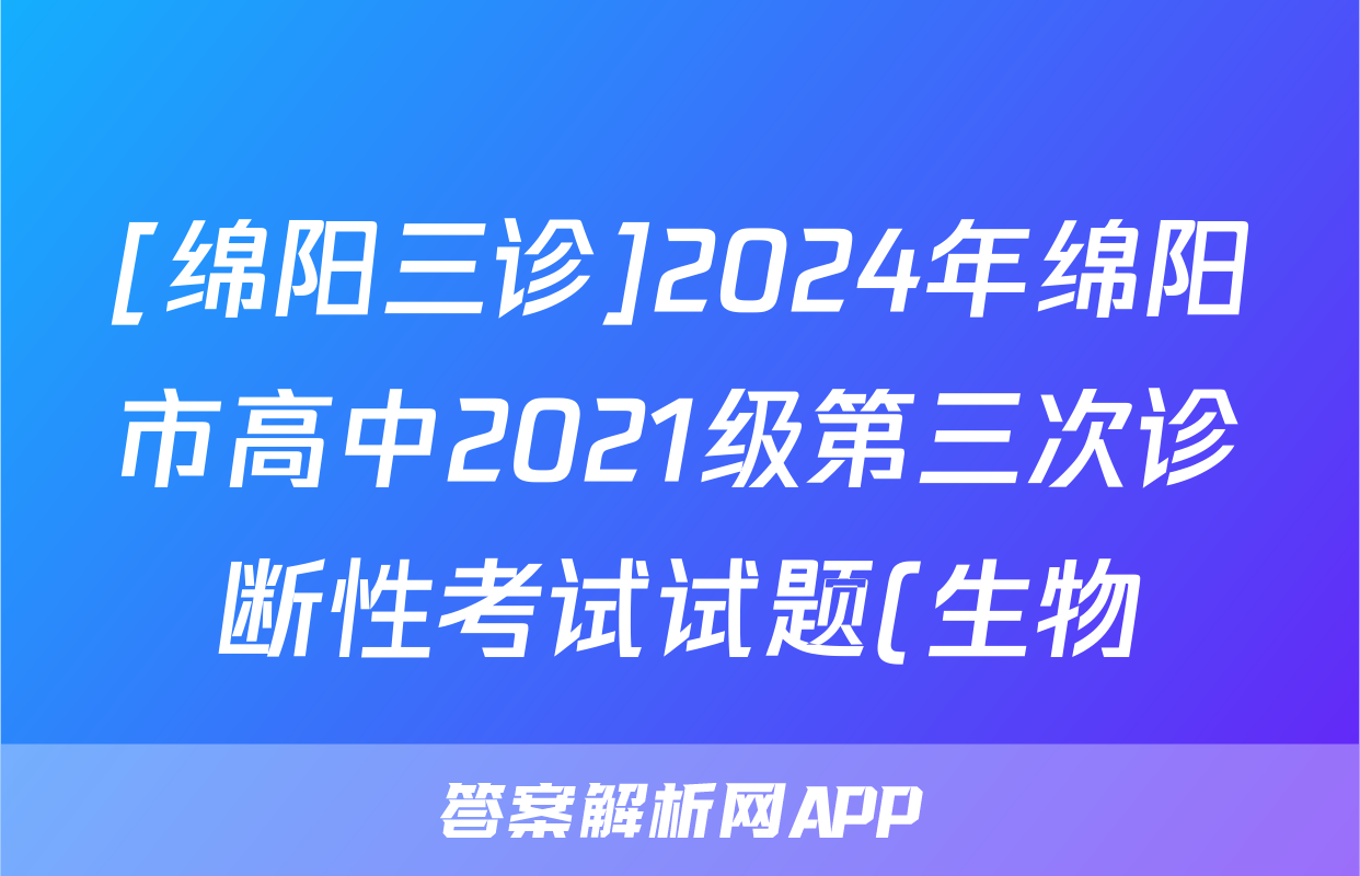 [绵阳三诊]2024年绵阳市高中2021级第三次诊断性考试试题(生物)正在持续更新,目前2024-2025衡中同卷答案网为大家整理了相关试题及答案,供大家查缺补漏,高效提升成绩。