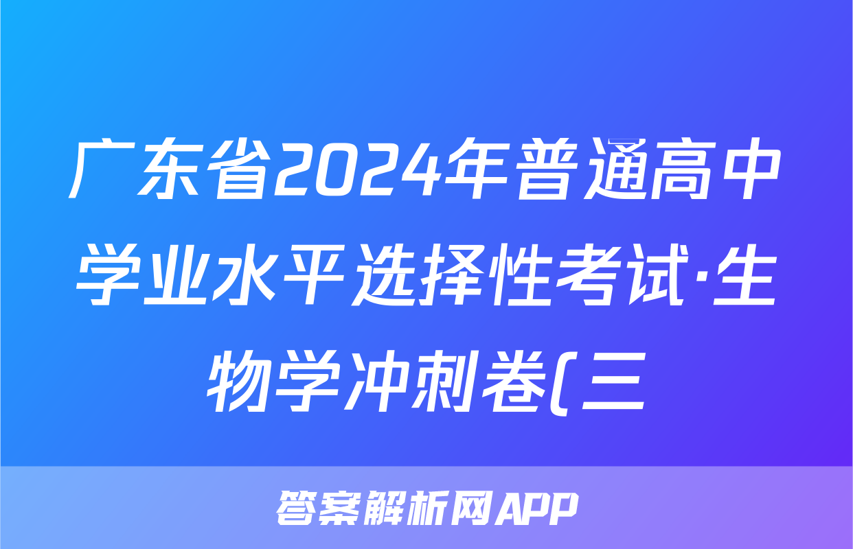 广东省2024年普通高中学业水平选择性考试·生物学冲刺卷(三)3[24·(新高考)CCJ·生物学·G DONG]试题正在持续更新,目前2024-2025衡中同卷答案网为大家整理了相关试题及答案,供大家查缺补漏,高效提升成绩。