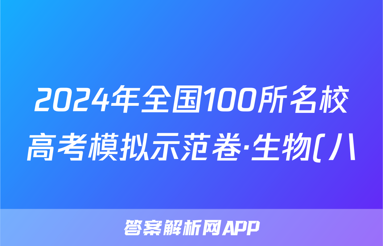 2024年全国100所名校高考模拟示范卷·生物(八)8[24·ZX·MNJ·生物·N]答案正在持续更新,目前2024-2025衡中同卷答案网为大家整理了相关试题及答案,供大家查缺补漏,高效提升成绩。