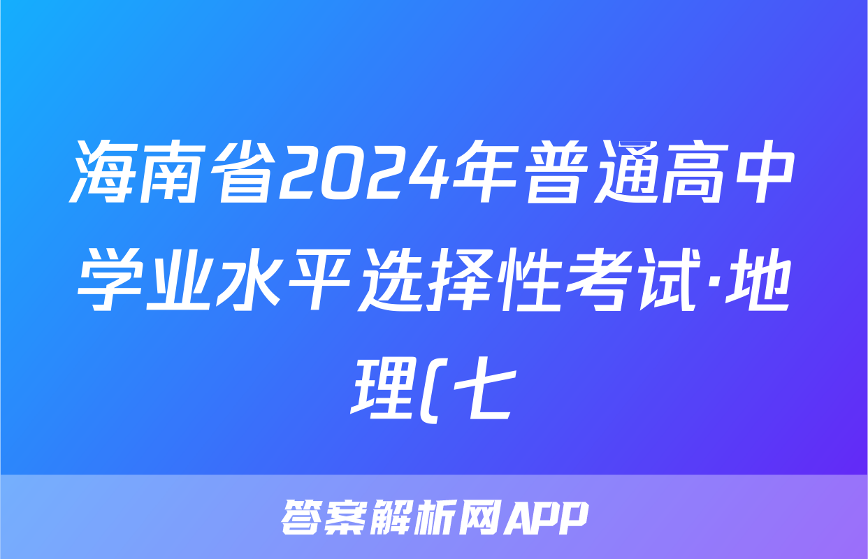 海南省2024年普通高中学业水平选择性考试·地理(七)7[24·(新高考)ZX·MNJ·地理·HAIN]答案正在持续更新,目前2024-2025衡中同卷答案网为大家整理了相关试题及答案,供大家查缺补漏,高效提升成绩。