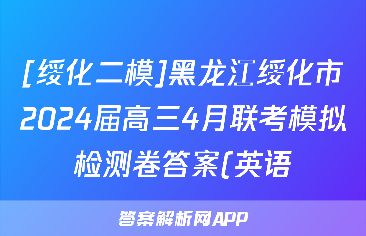 [绥化二模]黑龙江绥化市2024届高三4月联考模拟检测卷答案(英语)正在持续更新,目前2024-2025衡中同卷答案网为大家整理了相关试题及答案,供大家查缺补漏,高效提升成绩。