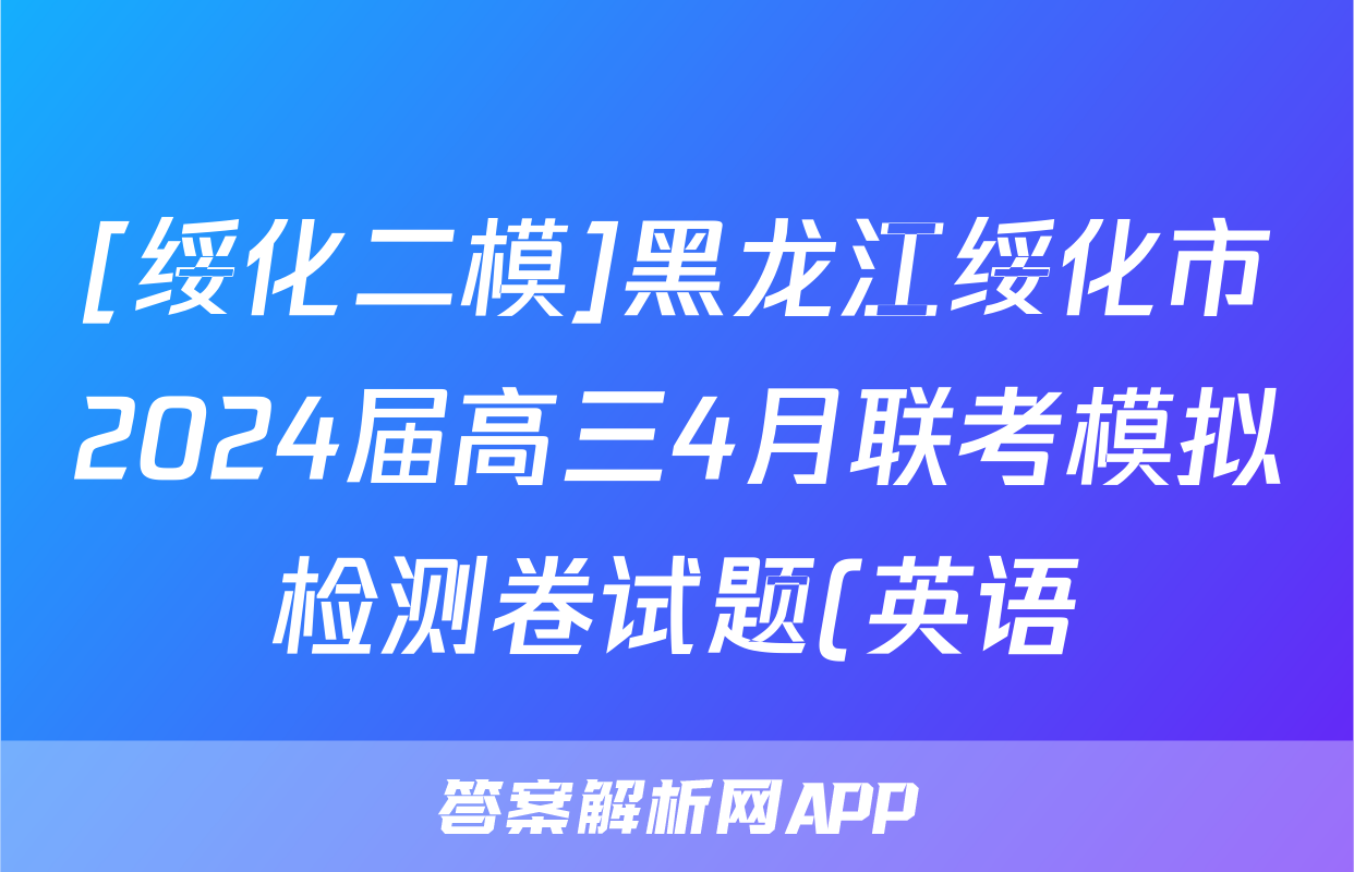 [绥化二模]黑龙江绥化市2024届高三4月联考模拟检测卷试题(英语)正在持续更新,目前2024-2025衡中同卷答案网为大家整理了相关试题及答案,供大家查缺补漏,高效提升成绩。
