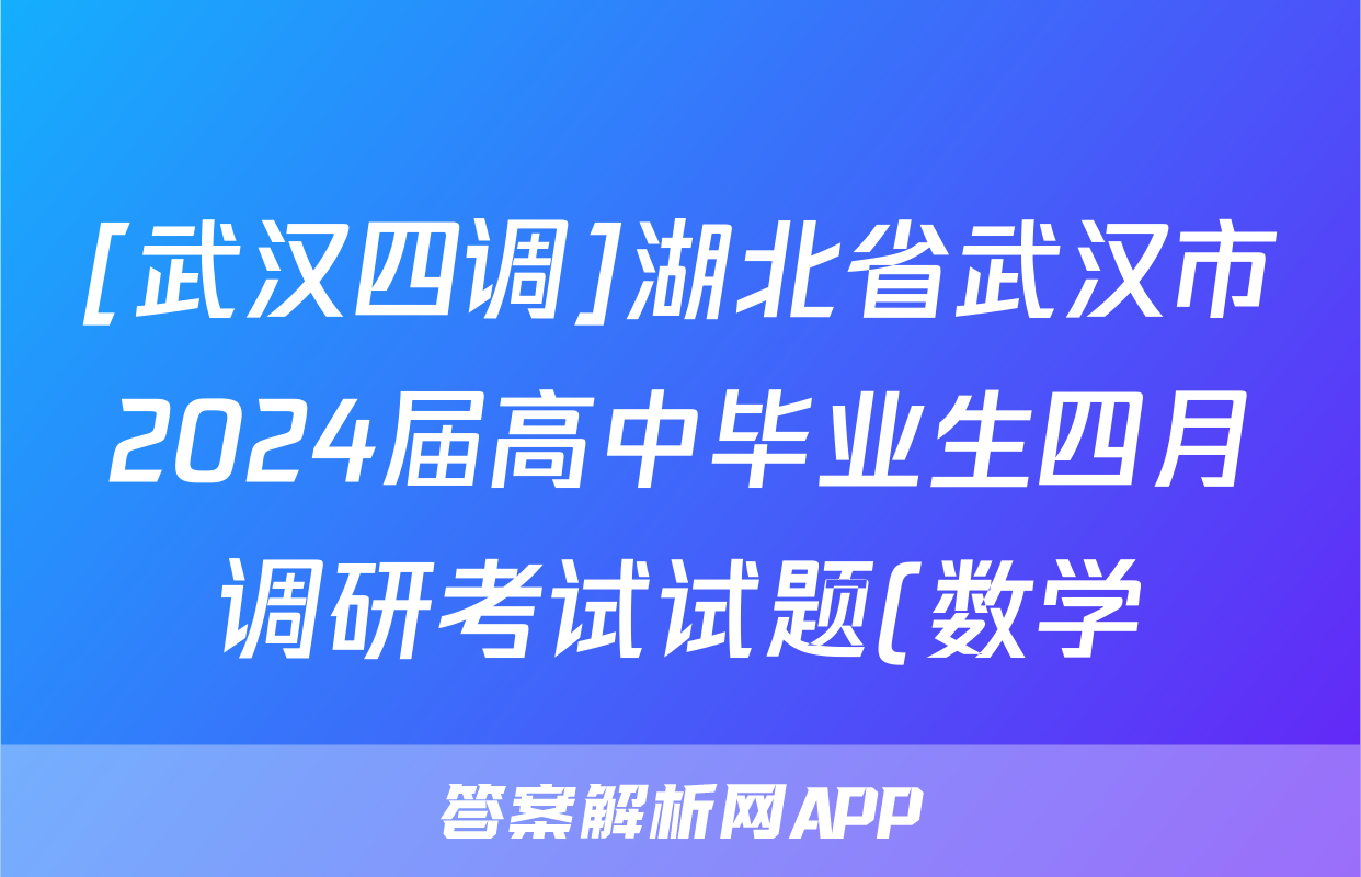 [武汉四调]湖北省武汉市2024届高中毕业生四月调研考试试题(数学)正在持续更新,目前2024-2025衡中同卷答案网为大家整理了相关试题及答案,供大家查缺补漏,高效提升成绩。