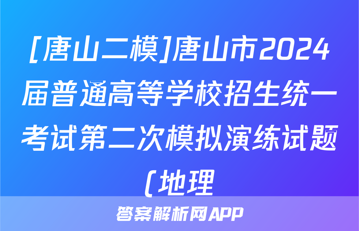 [唐山二模]唐山市2024届普通高等学校招生统一考试第二次模拟演练试题(地理)正在持续更新,目前2024-2025衡中同卷答案网为大家整理了相关试题及答案,供大家查缺补漏,高效提升成绩。