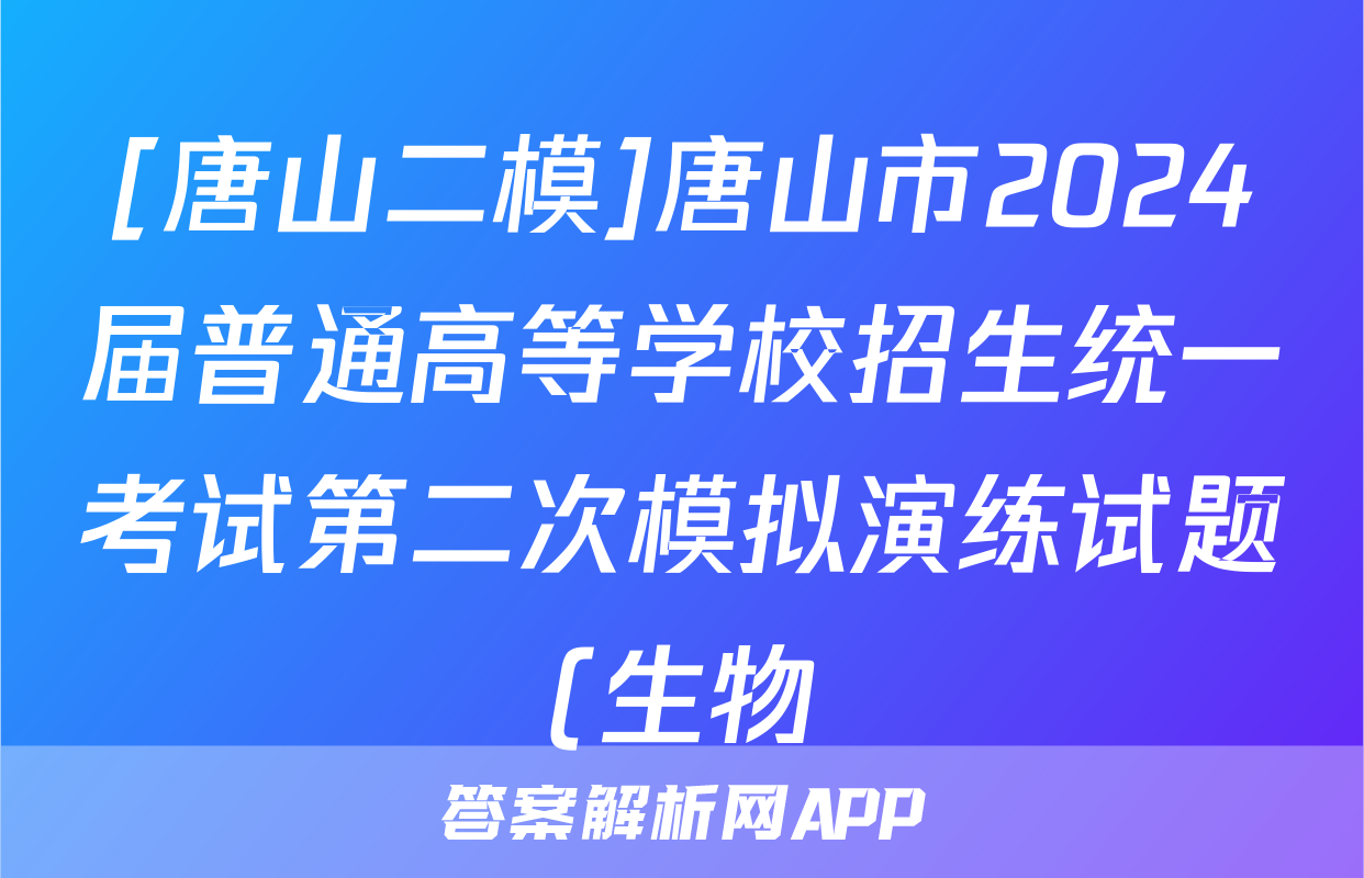 [唐山二模]唐山市2024届普通高等学校招生统一考试第二次模拟演练试题(生物)正在持续更新,目前2024-2025衡中同卷答案网为大家整理了相关试题及答案,供大家查缺补漏,高效提升成绩。