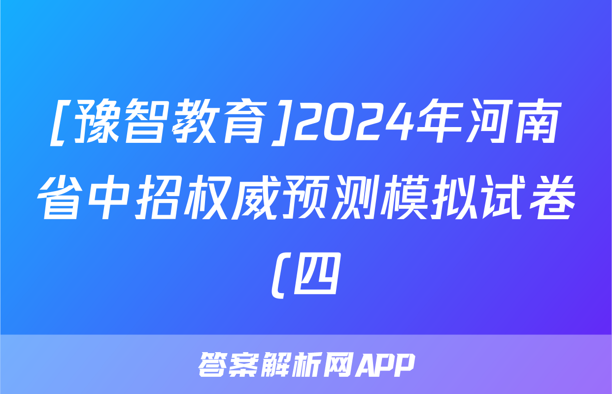 [豫智教育]2024年河南省中招权威预测模拟试卷(四)4英语答案正在持续更新,目前2024-2025衡中同卷答案网为大家整理了相关试题及答案,供大家查缺补漏,高效提升成绩。